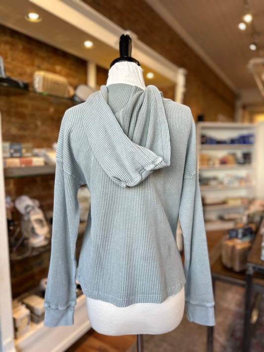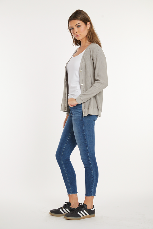 Long Sleeve Button Front Waffle Longer Cardi Moonshine