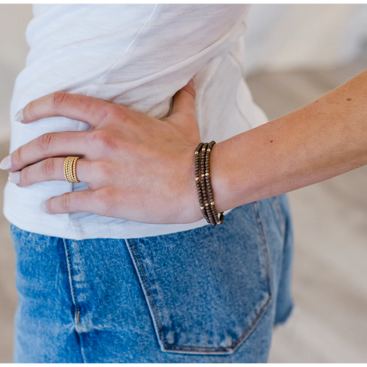 OG Classic Bracelet Stack in Matte Charcoal Brown + Gold Filled