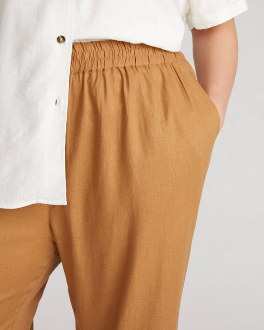 Iris Linen Easy Pull-On Pants in Boardwalk Brown
