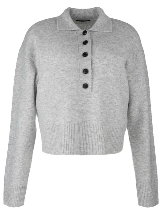 Lilia Button Front Long Sleeve Sweater (Heather Grey)