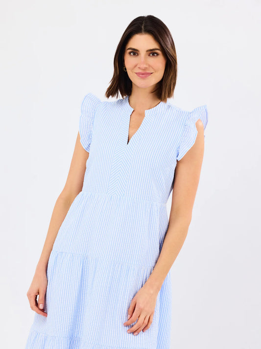 Priscilla Short Dress in Blue & White Stripe