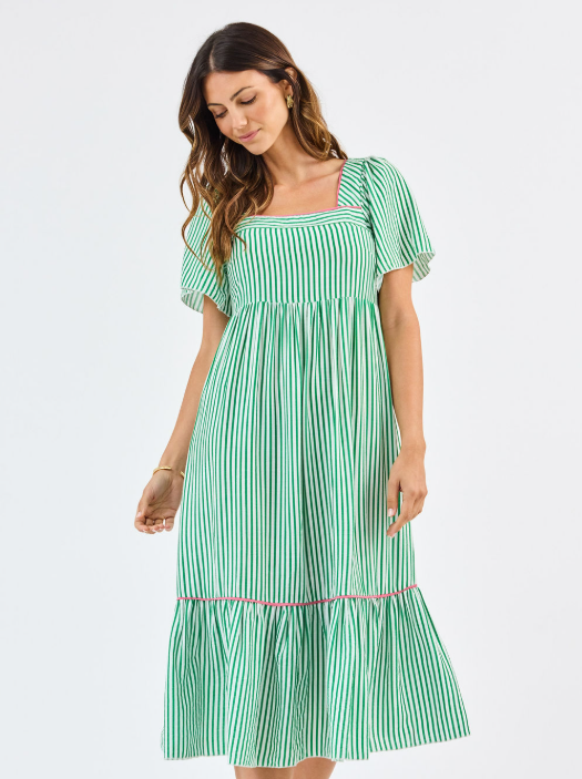 Brenda Dress in Green & White