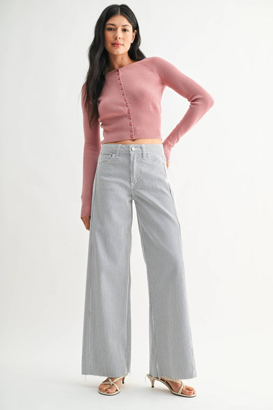 Catalina V-Neck Sweater in Blush + Lipstick Stripe