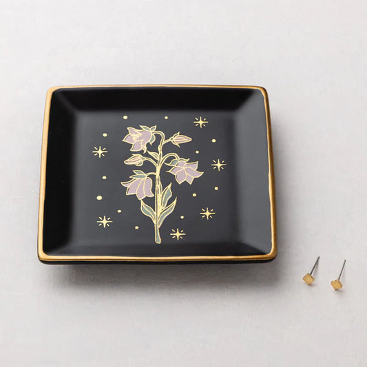 Jewelry Dish & Stud Earring Set - Flower/Black