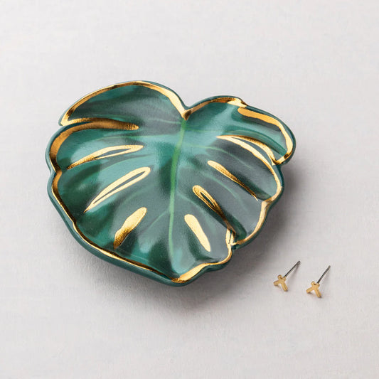 Jewelry Dish & Stud Earring Set - Leaf /Sage