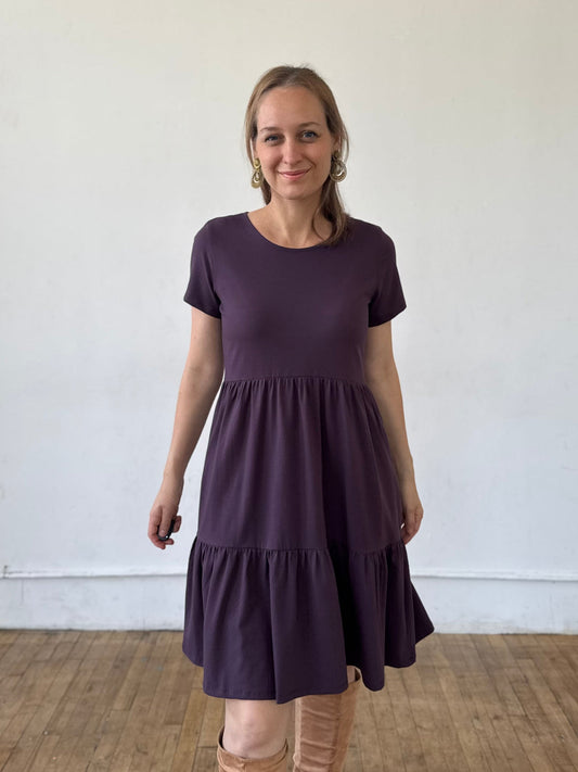 3/4 Sleeve Satin Midi Dress in Dark Roast