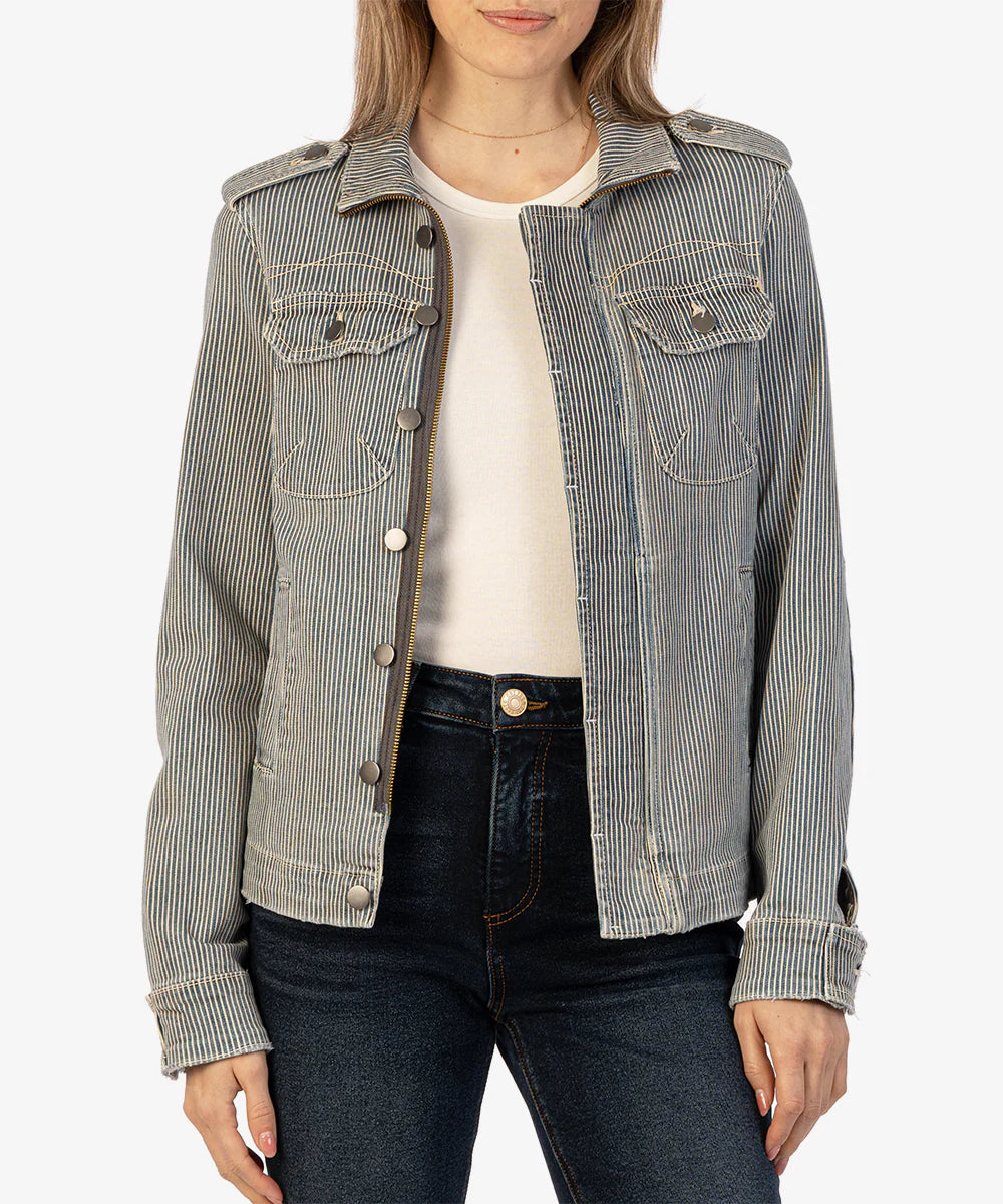 - The classic boxy jacket is given a contemporary revamp in this boldly striped version cut from a comfy cotton blend.
