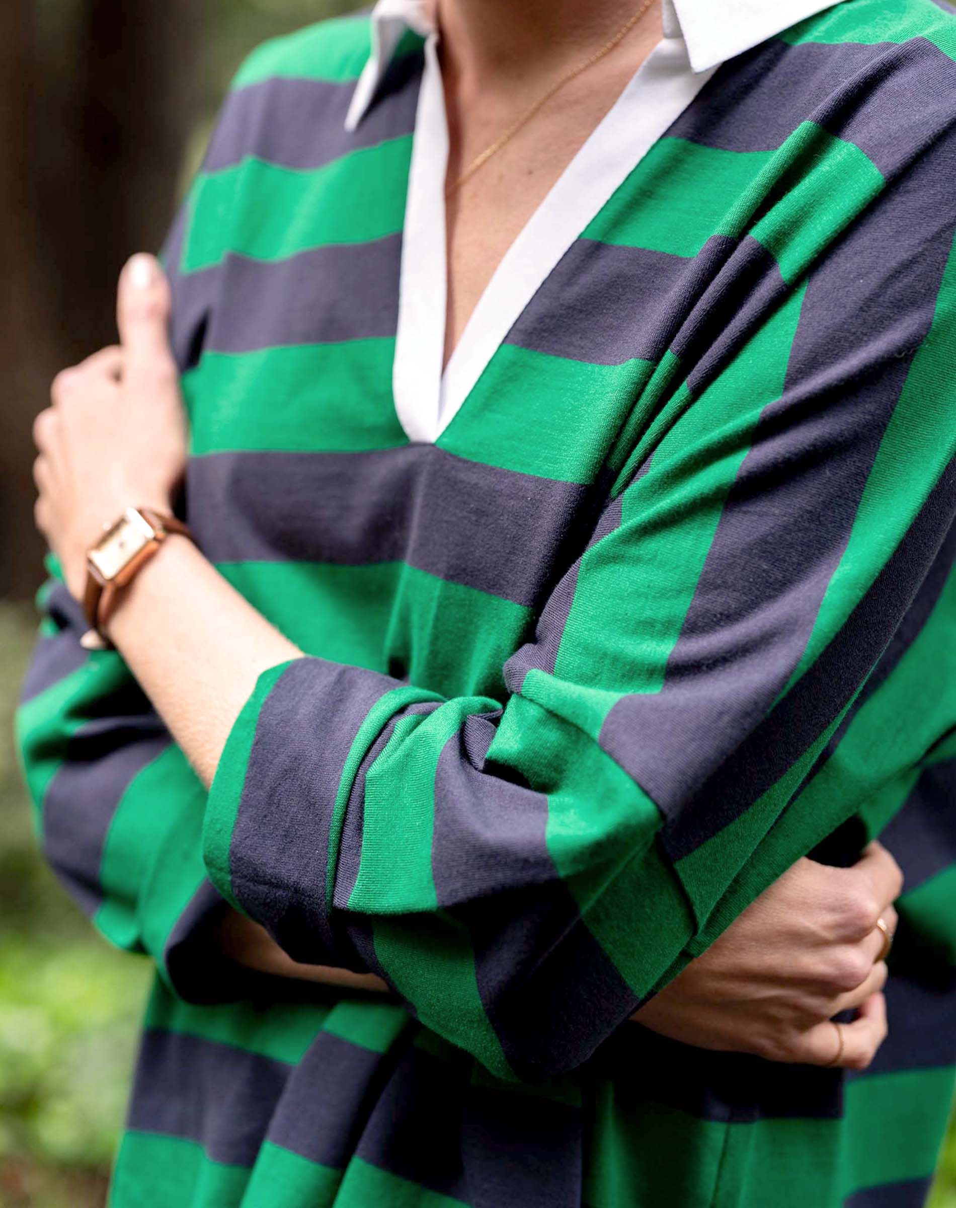 This style fills us with nostalgia—remember your rugby tee? A tough and dependable top made to play hard. The Amelia Rugby Tee is a classic style and the ultimate staple—with details like small side slits you love from the best-selling Amelia Tee. This collared v-neckline placket and wide rugby stripe design is sporty-chic and perfect for layering. A tee for champions.