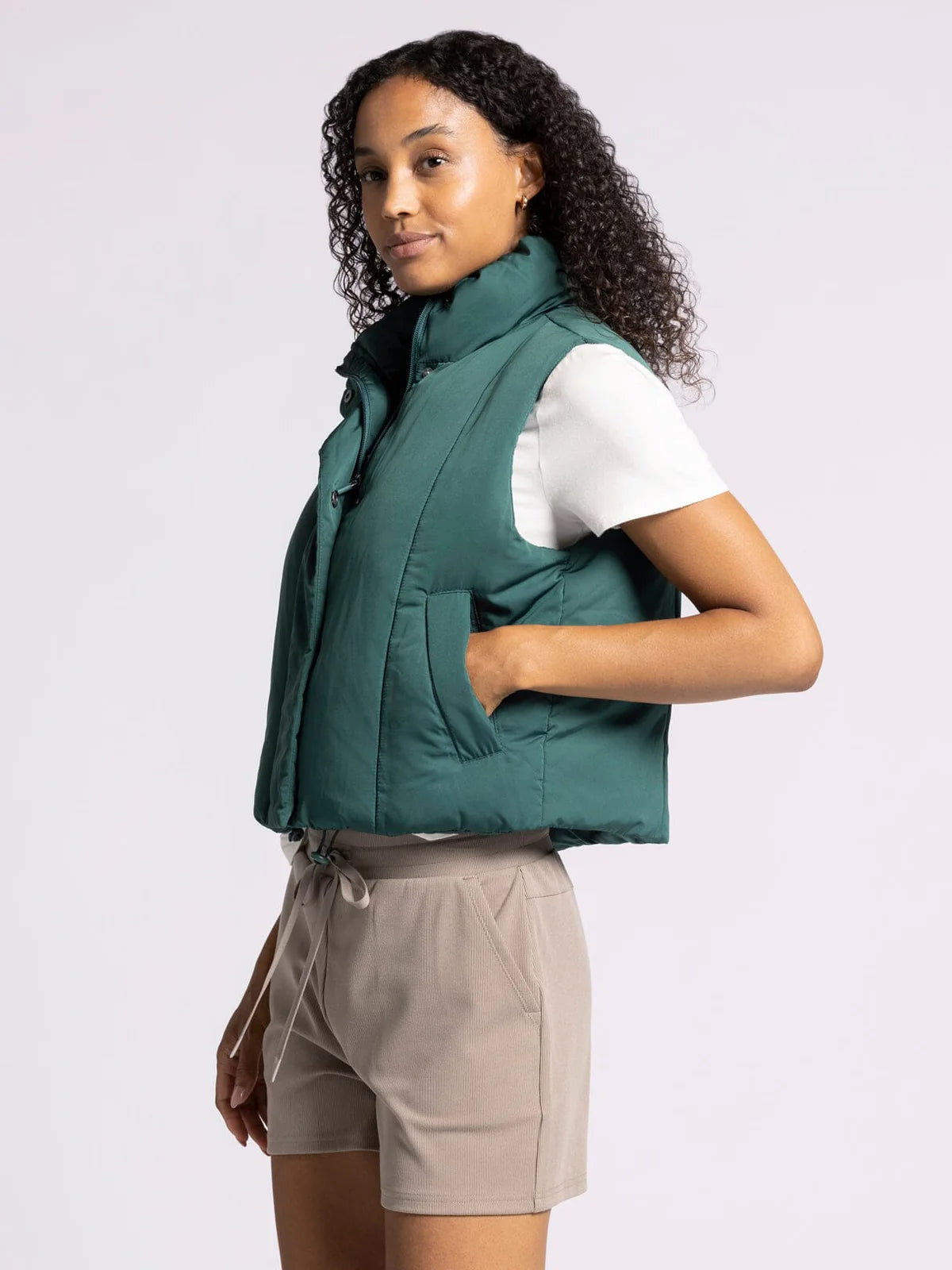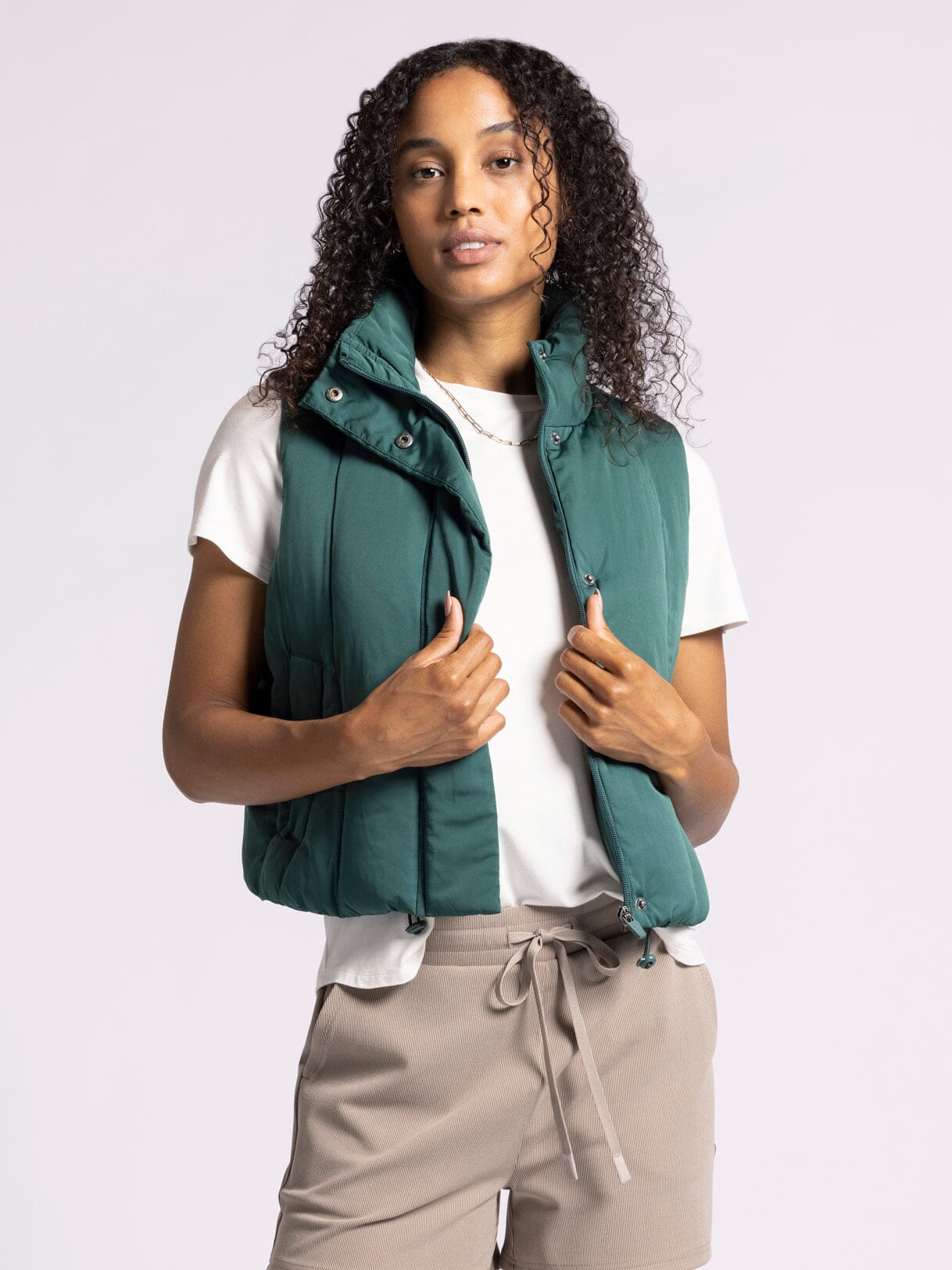 Layer up in style with the Anya Vest, your cold-weather essential with a pop of personality. This quilted vest features a cropped silhouette, high collar, and dual closure with both snaps and a zip front. The structured shape flatters your figure, while side pockets keep hands toasty (or hold your on-the-go musts). It’s the easiest way to add warmth and color to any outfit.