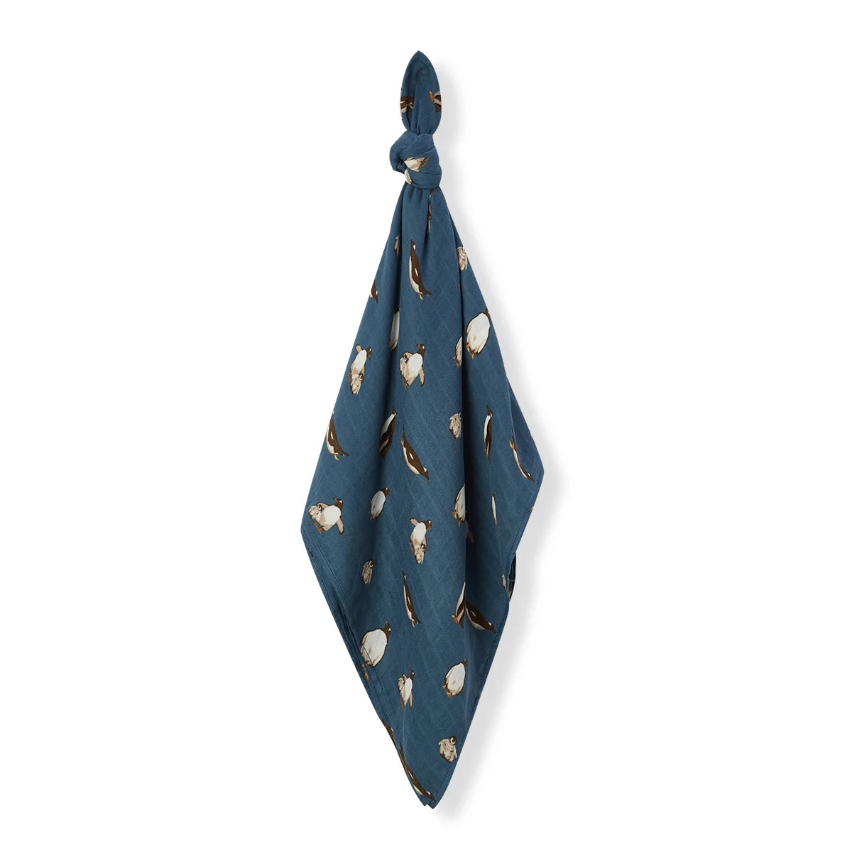 Our sumptuously soft and generously sized newborn and baby Bamboo Muslin Swaddle Blanket helps our little ones feel safe and secure while being wrapped in smooth and gentle luxury. Each Swaddle Blanket measures approximately 47″ x 47″. We bundle each Bamboo Swaddle Blanket in a classic burlap sleeve adorned with a wooden button.