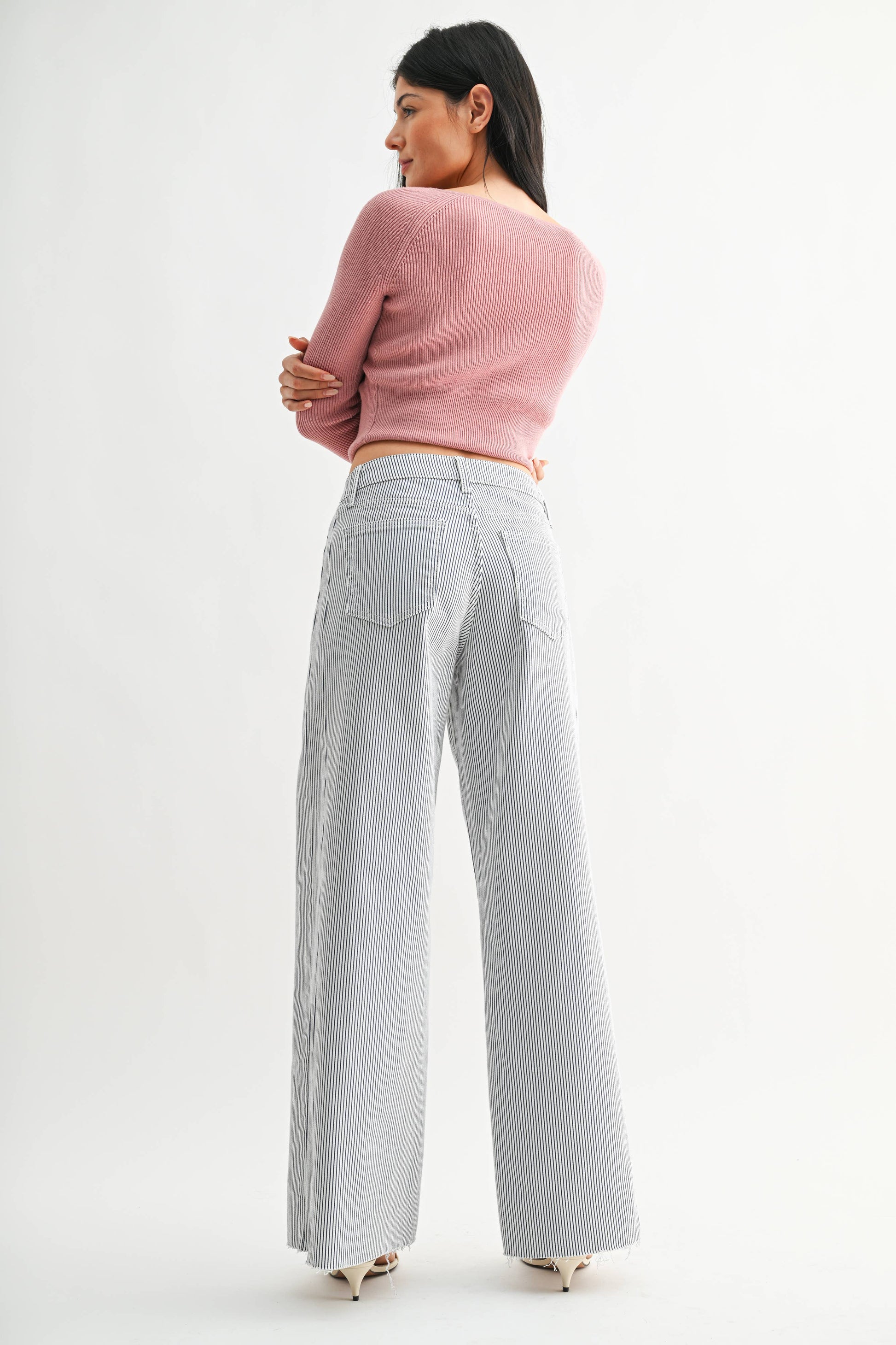 These are the jeans that instantly make your outfit look intentional. This Just Black Denim wide leg style features a subtle stripe pattern that feels elevated but still easy, plus a clean silhouette that gives you that long, flattering line we’re all chasing.