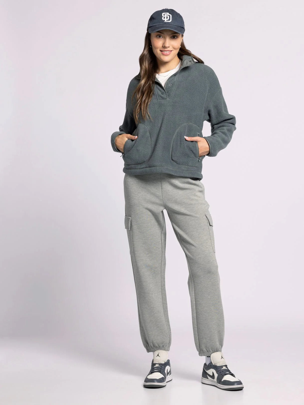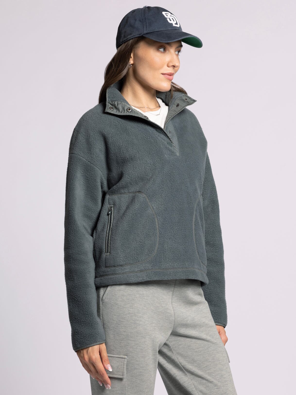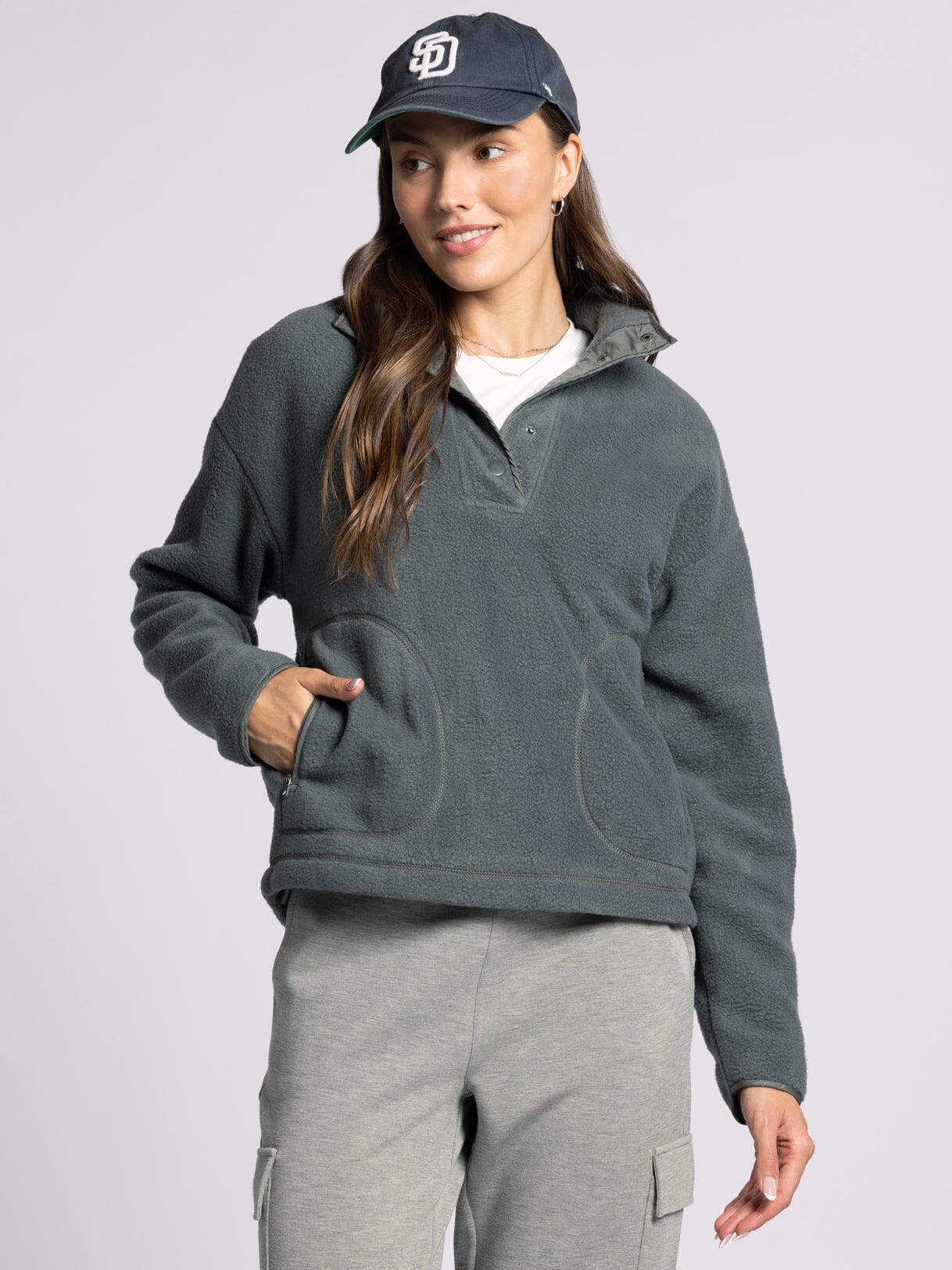 Your off-duty uniform just got an upgrade. The Bretta Pullover is that effortless throw-on-and-go layer you’ll find yourself reaching for daily. Made with cozy fleece, a half-snap mock neck, and handy side zip pockets, it blends comfort and practicality in one cool-weather essential. Perfect for morning walks, road trips, or just lounging in style.