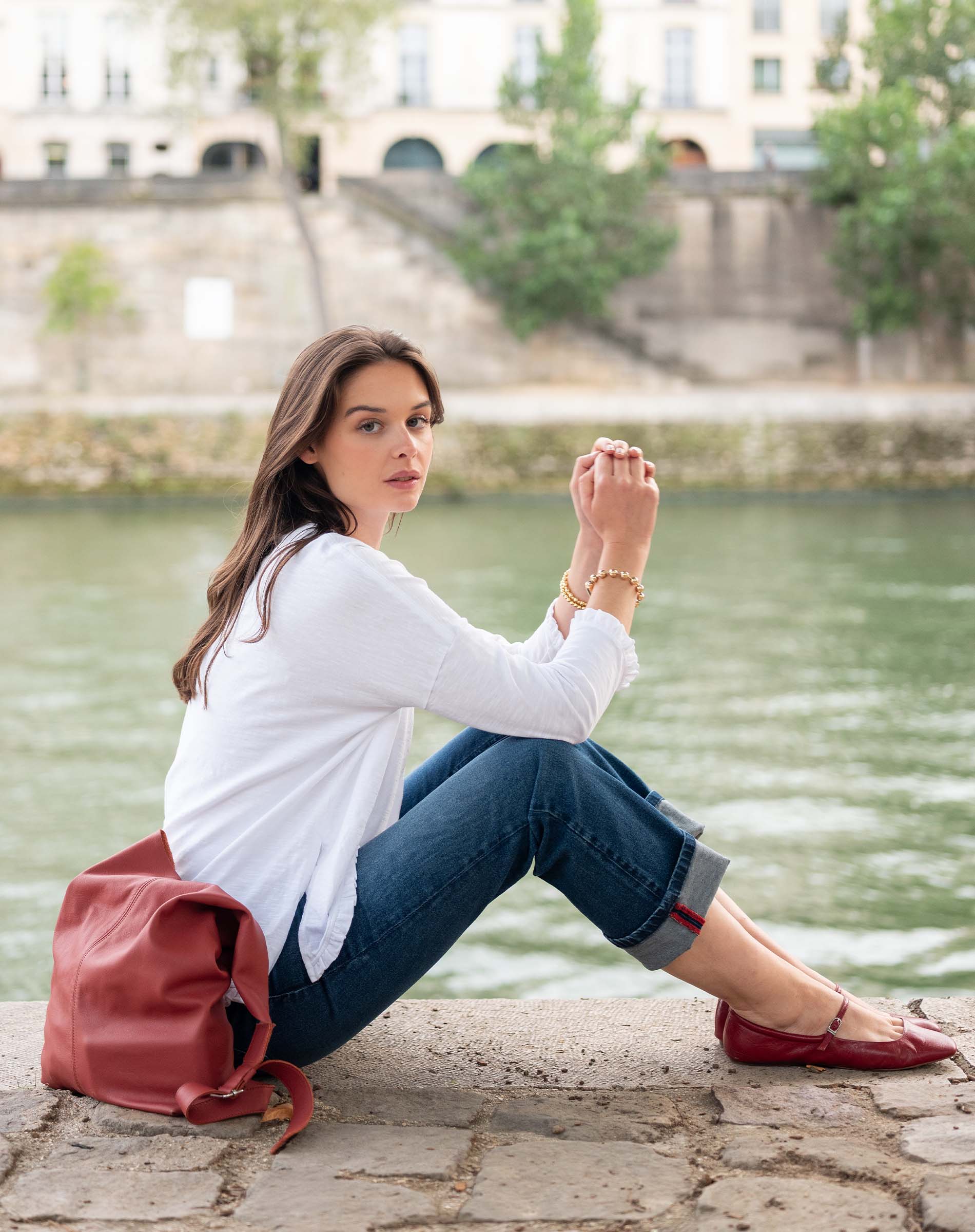 Modeled after the best-selling Catalina Sweater, the Catalina Ruffle Tee has the same easy movement and signature details, but in a lightweight tee you can wear year-round. It’s relaxed, drapey, and ridiculously easy to style — wear it loose, French-tucked, or knotted at the hip depending on the vibe of the day.