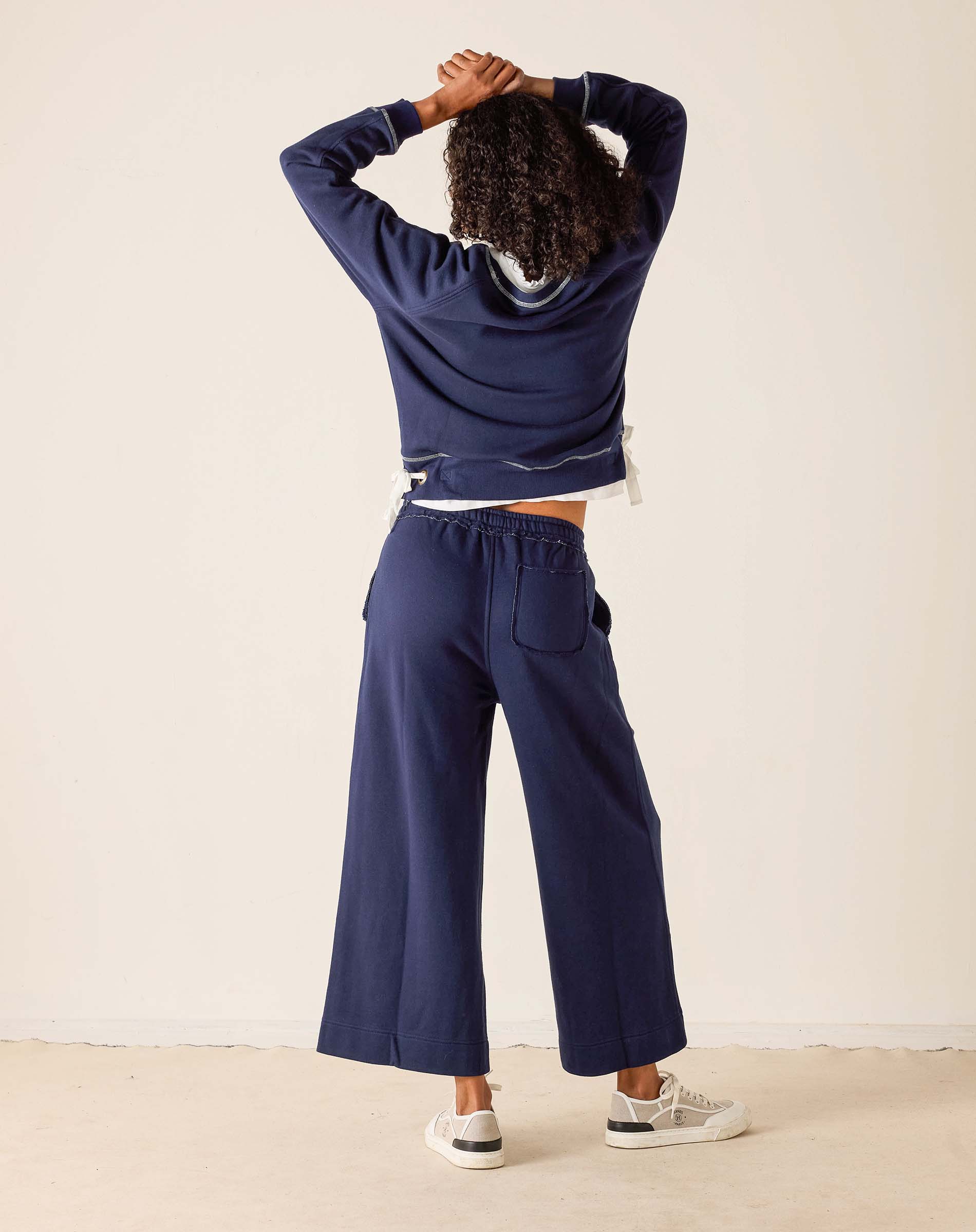 This elevated crewneck is made from ultra-soft French terry that feels cozy without looking casual. Contrast stitching adds subtle texture, while twill bow ties at each side bring in a playful, unexpected touch. It’s the kind of top that instantly makes leggings or denim feel more styled, without sacrificing comfort.