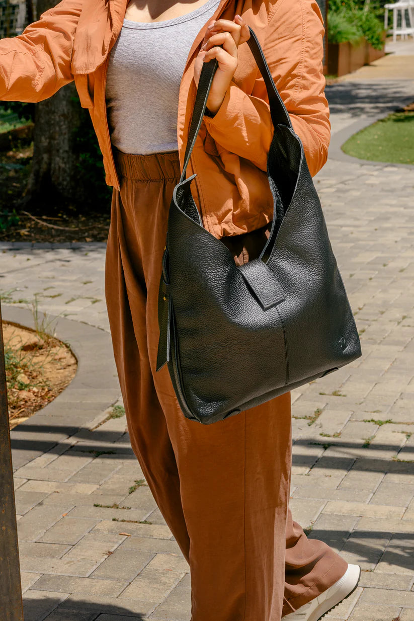 Relaxed, slouchy, and effortlessly chic—the Bindle Bag is a modern take on the classic hobo. Its fold-over flap with a secure snap keeps your essentials safe while maintaining a clean silhouette. Inside, a slip pocket helps with organization, while the adjustable leather shoulder strap makes it easy to wear your way. Lightweight yet roomy, this bag transitions seamlessly from workdays to weekends.