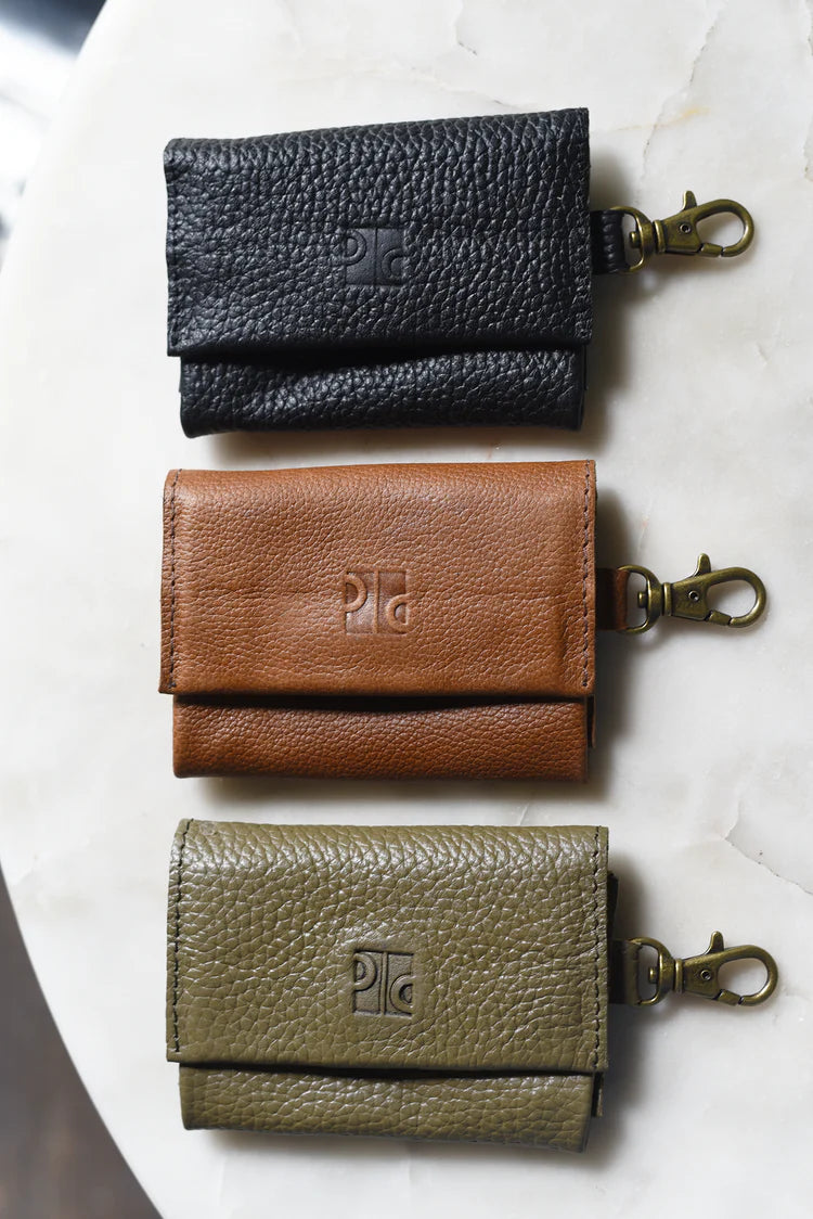 Keep your essentials close without the bulk. The Mini Wallet Charm is a compact companion featuring two card slots, a zippered center divider, and a fold-over snap closure to keep everything secure. The antique brass clip attaches easily to your bag, wristlet, or keys, making it the perfect grab-and-go wallet for everyday use.