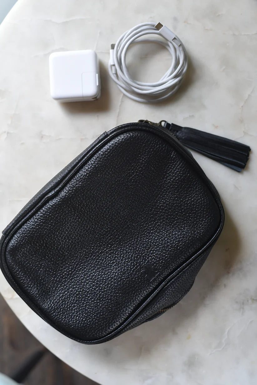 Meet the pouch that does it all. With a zip-around design that opens flat, the Organizational Pouch is perfect for keeping your essentials neatly in place—whether you’re packing for travel, organizing tech accessories, or corralling makeup. The fully lined black cotton interior makes cleanup easy, while one long slip pocket and two smaller slip pockets (all leather-lined) keep things sorted and secure.