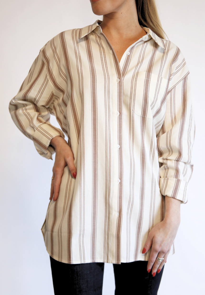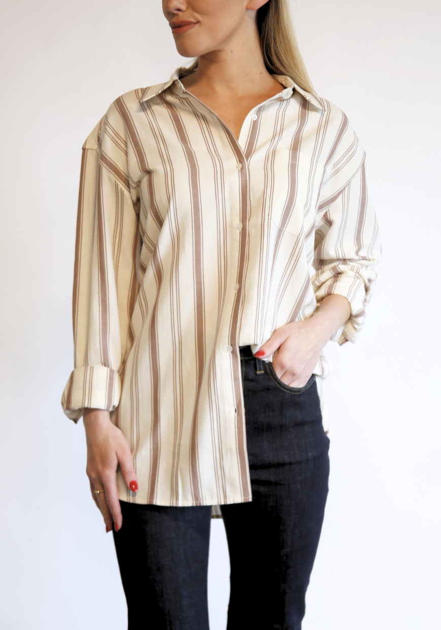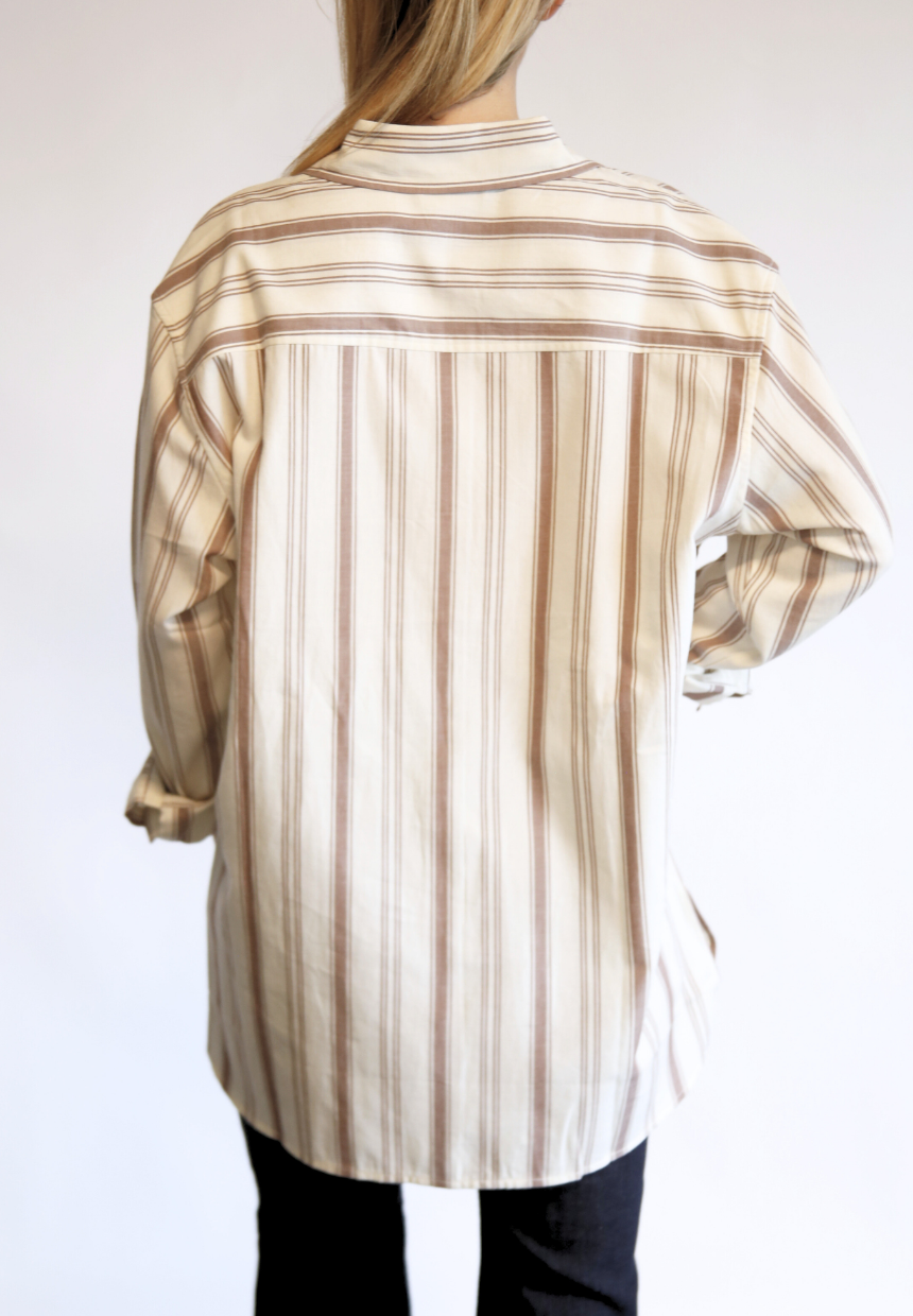 Harris Oversized Button Down Shirt in Nutmeg Stripe