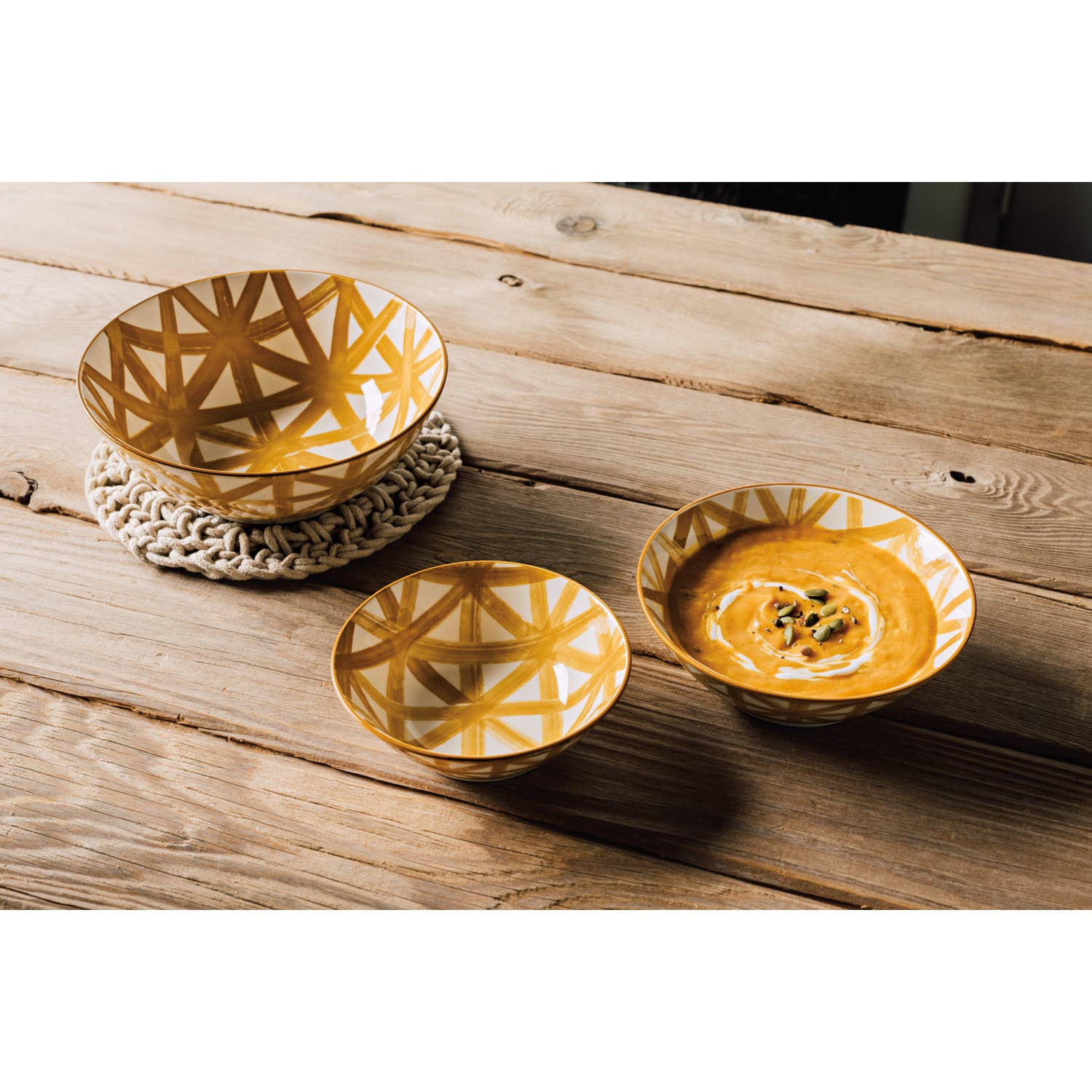 Boasting a pattern inside and out, this Imperial Crosshatch Stamped small bowl harmonizes with the other Danica Heirloom collections. Crowned with a hand-painted rim, this beautiful, stackable bowl is destined to become an everyday favorite.