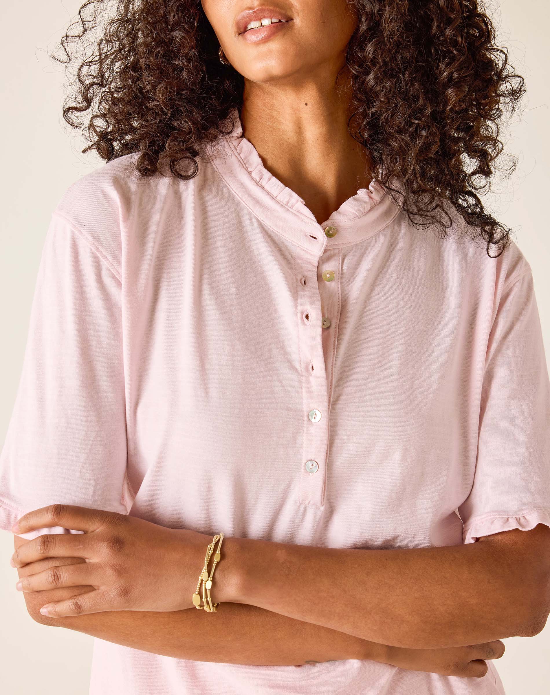 Joesphine Ruffle Henley Tee in Rose Quartz