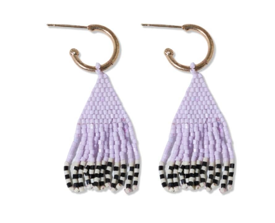 Leta Mini Gold Hoop Solid With Black/White Bottom Beaded Fringe Earrings Light Lavender