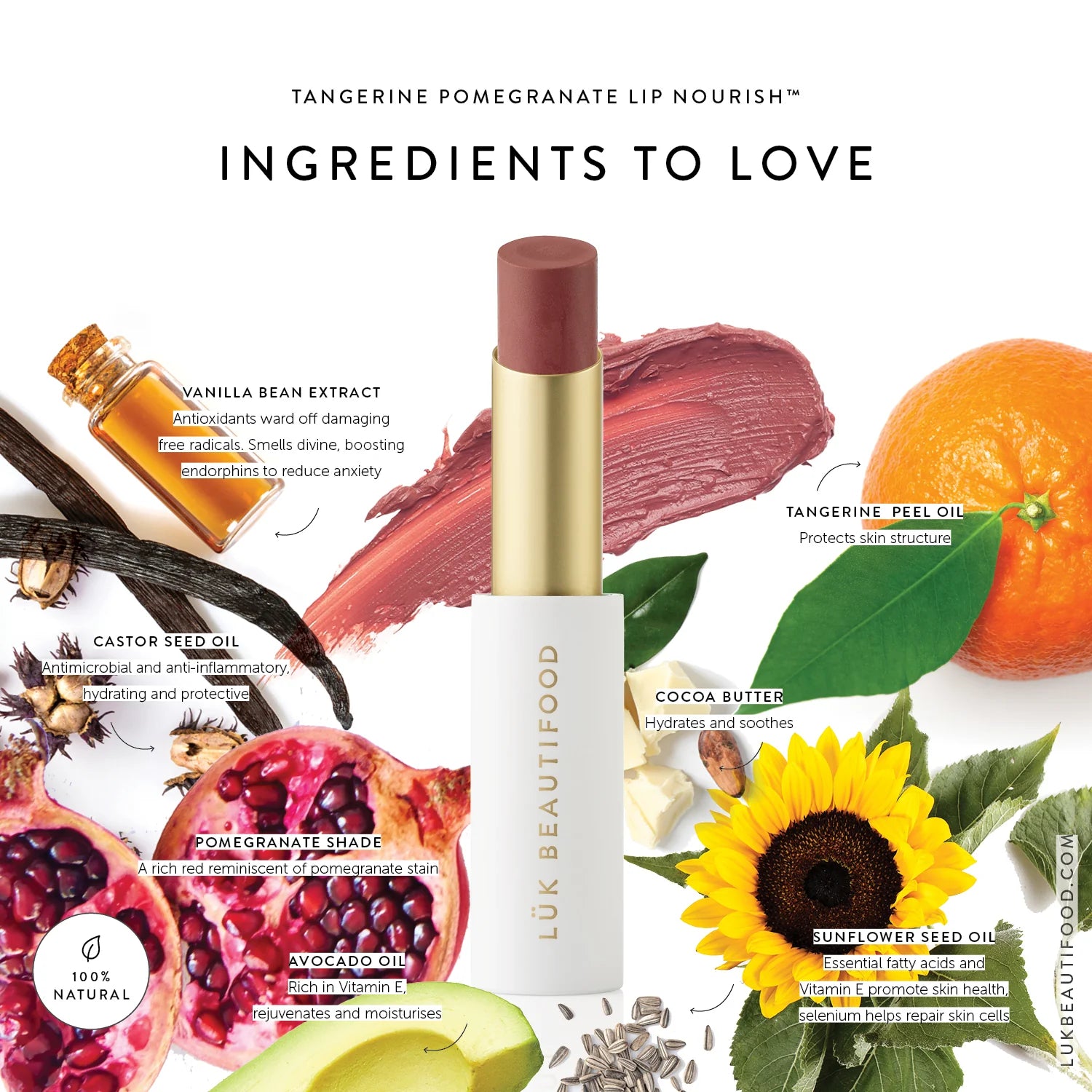 Tangerine Pomegranate - a deep burnished rose, highlights natural tones in lips with hydrating colour.