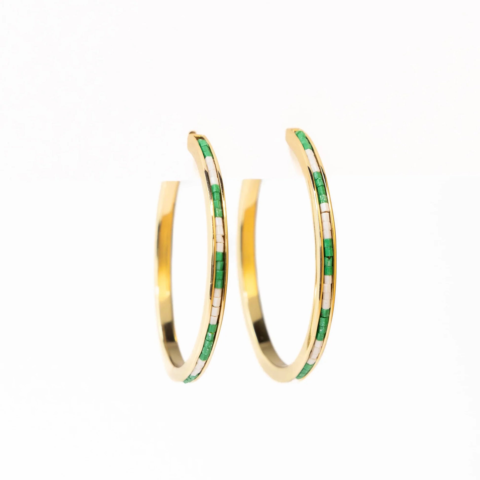 Lulu Hoop Earring Brass With Chanel Of Seed Bead Kelly Green