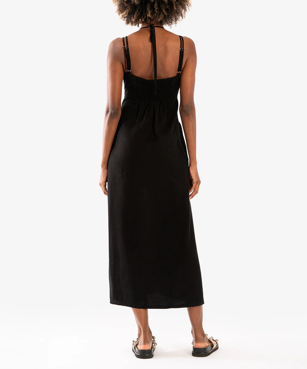 Lydia Spaghetti Strap Dress with Smoked Back (Black)