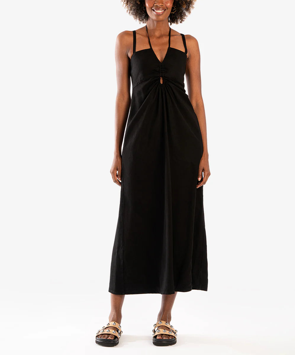 A gathered keyhole on the bodice lends a dainty touch to this strappy maxi dress that's ready for any occasion.