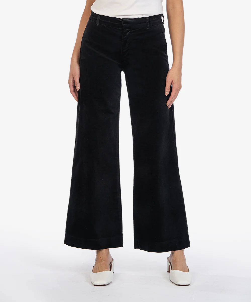 - Stretchy velvet adds plush texture and a glamorous feel to these ankle-grazing wide-leg pants elevated by trouser-style side pockets.