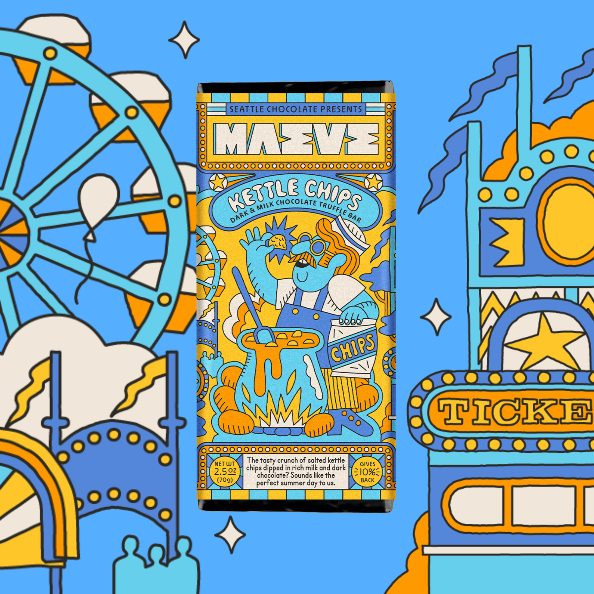 New from our Fantastical Fair Foods summer line! This truffle bar brings together the summery salted crunch of kettle chips and the sweet double feature of dark & milk chocolate. Snack away! (2.5oz)