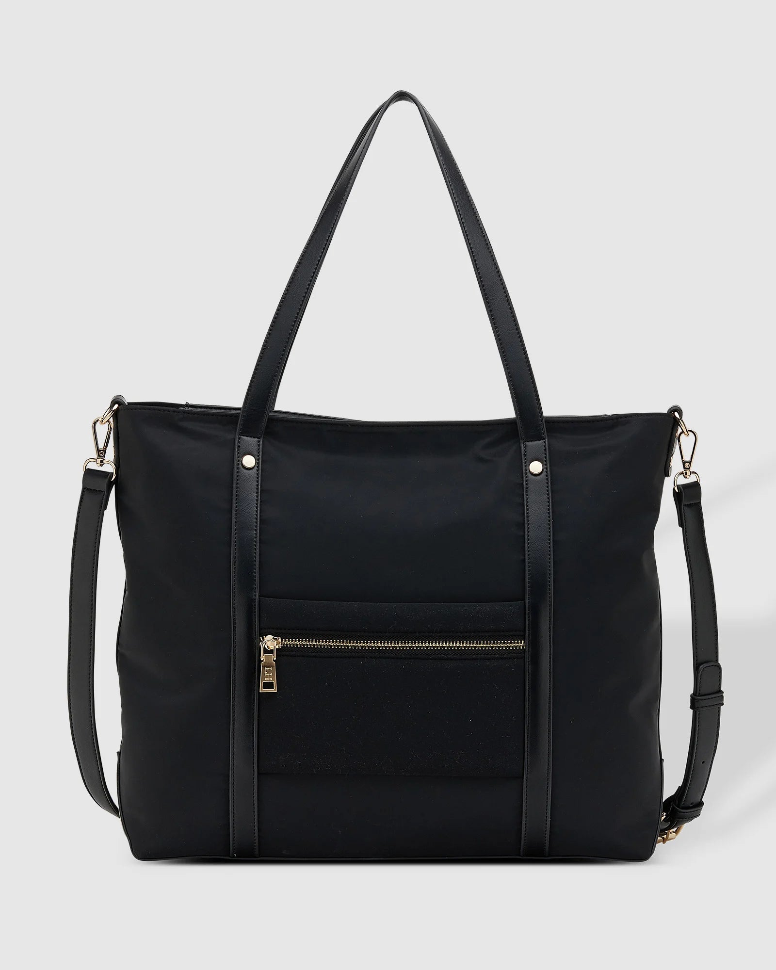 The Louenhide Nora Nylon Tote Bag is the perfect combination of practicality and style. With its spacious interior, this tote bag is perfect for carrying your daily essentials. It features one zip pocket and two slip pockets in the main compartment, as well as a backside zip pocket and feet on the base to keep your belongings safe and secure. The backside suitcase sleeve allows you to easily attach the tote to your luggage for added convenience. The adjustable and detachable sateen guitar strap and PU strap provide versatility and comfort, allowing you to wear the bag over the shoulder or crossbody. The partial secure zip and light gold hardware add a touch of elegance to this stylish and functional bag. Whether you're running errands or heading to work, the Louenhide Nora Nylon Tote Bag is the perfect accessory to complement any outfit.
