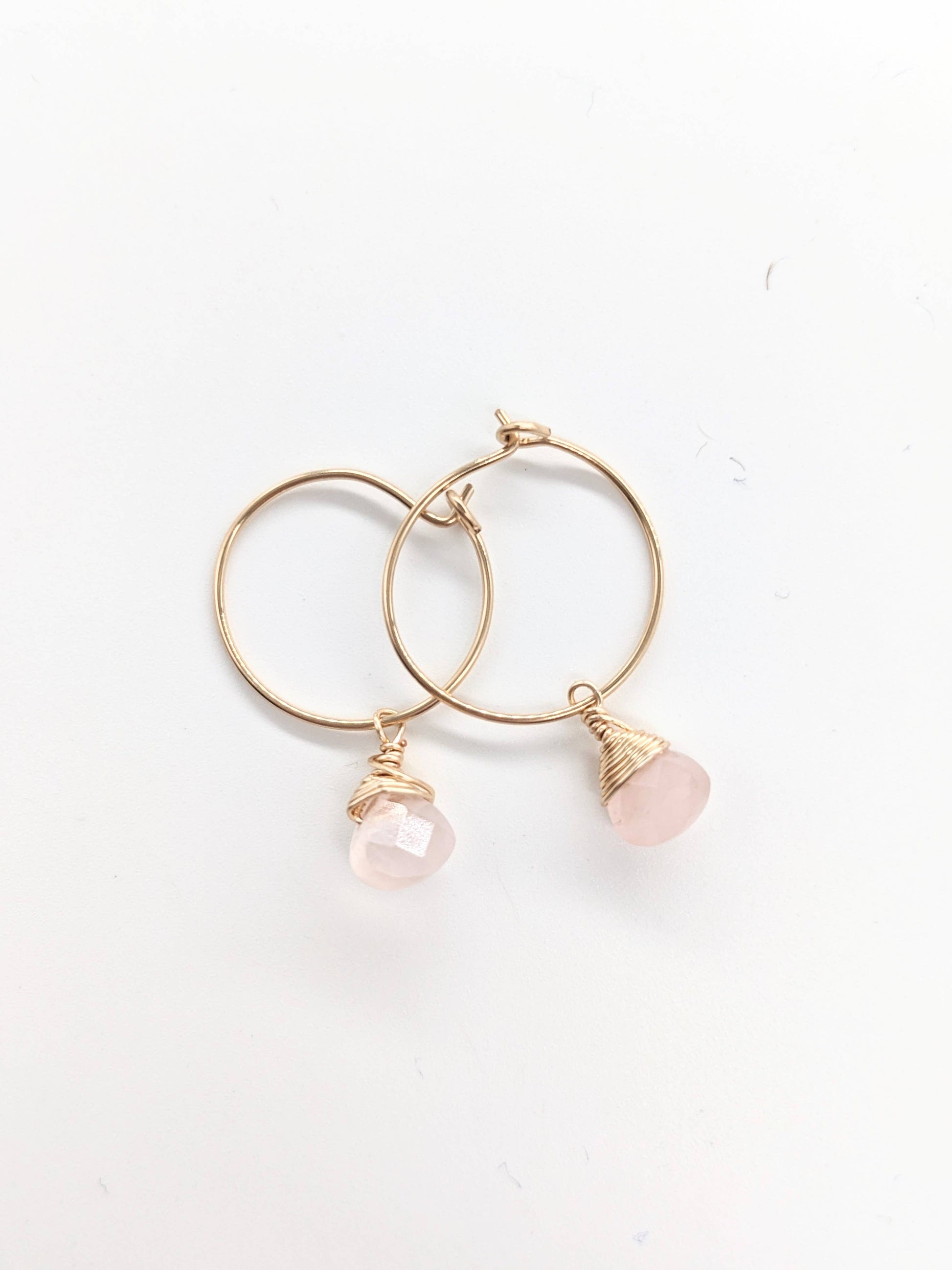 Rose Quartz Charm Mini Hoop Earrings in 14k Gold Filled