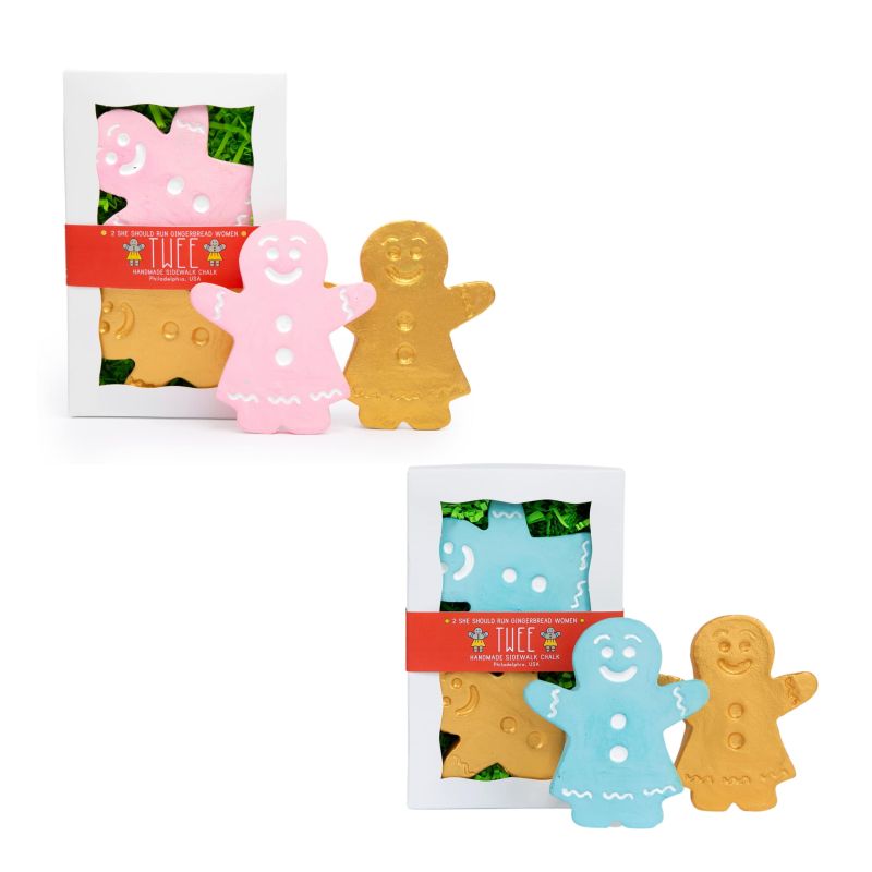 Run, run as fast as you can…. You can't catch us we are the super fast gingerbread women! Our TWEE She Should Run Gingerbread Women handmade sidewalk chalk is the perfect holiday gift for the budding artist, or anyone who loves creating artwork en plein air!