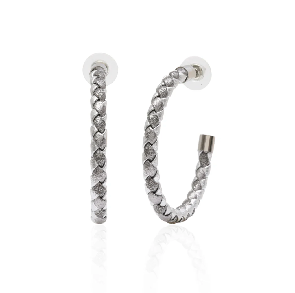 For all of you gold lovers... these strands of gold leather are beautifully woven into our braided hoop earrings.
