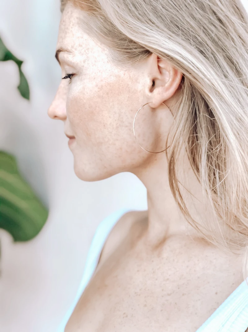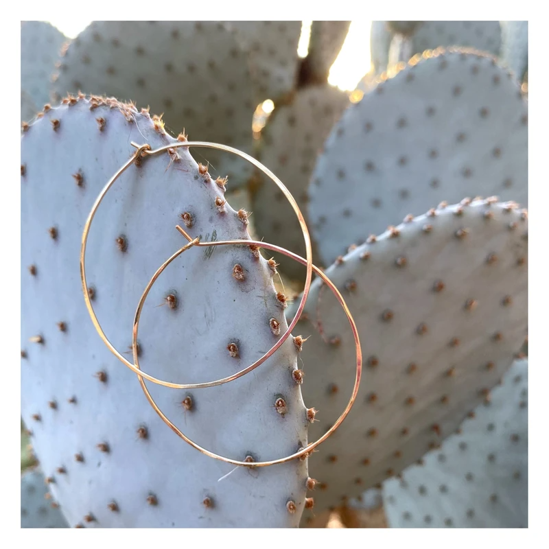 These classic, thin hoops are perfect for every-day-wear! Each pair is shaped and hammered by hand.