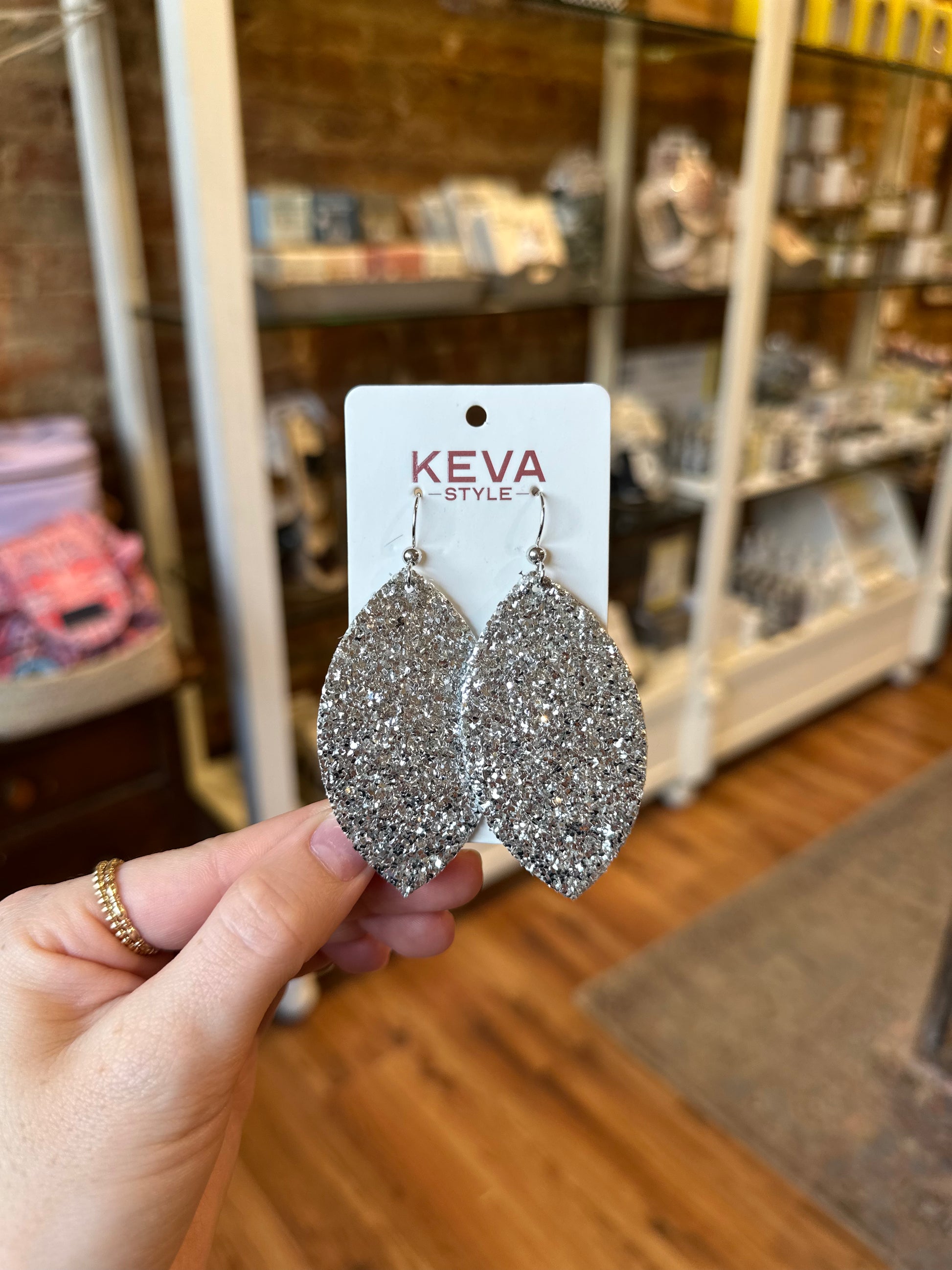 Silver Sparkle Leather Earrings - Large