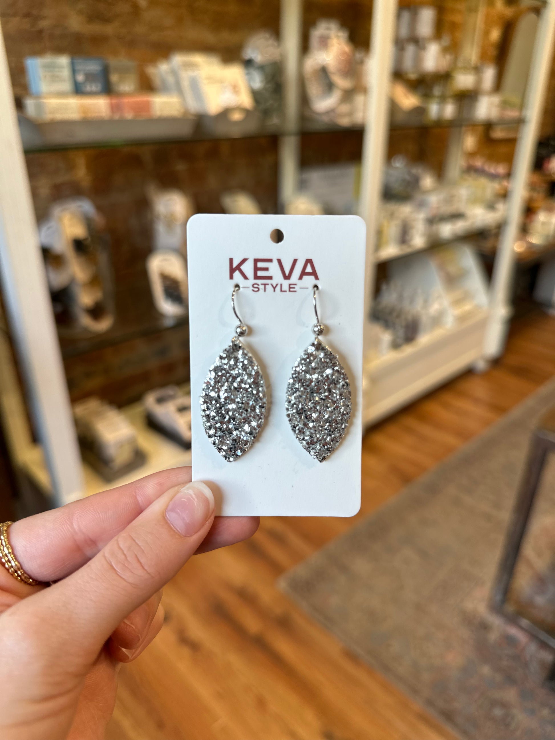 Silver Sparkle Leather Earrings - Small