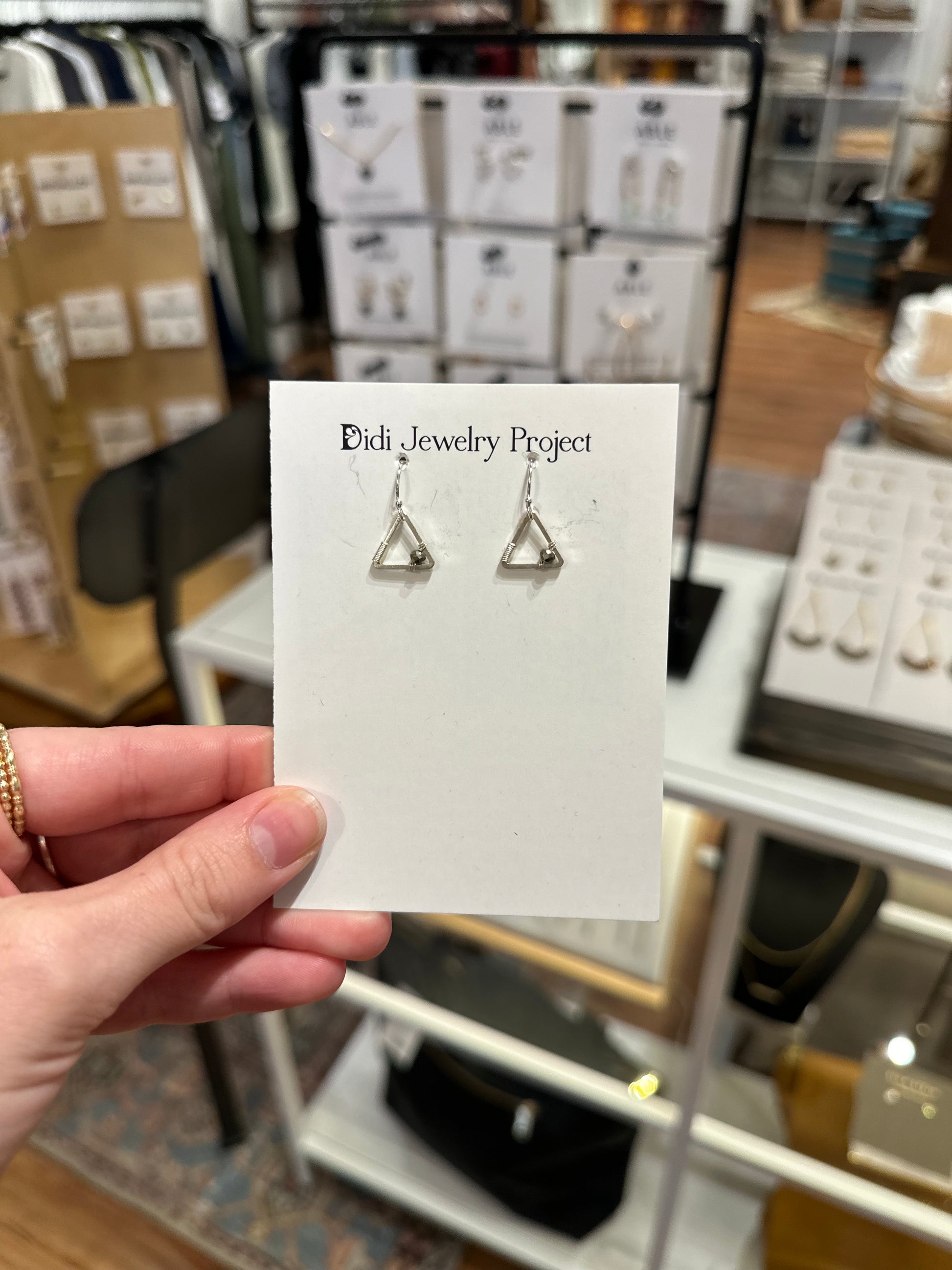 These Tiny Triangle Earrings are small, simple and stunning. The small flash of each stone color adds an accent of color to your day and the ever popular triangle shape is always great to adorn your ears with. These earrings are made with gold fill ear hooks, brass components, and semi-precious stones.