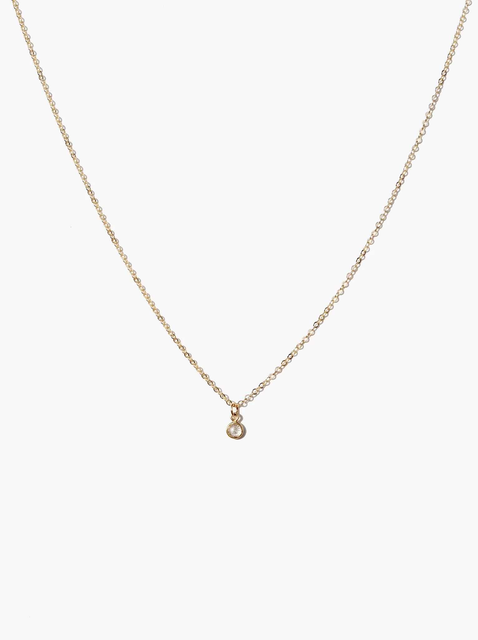 The Stella Drop Necklace brings understated elegance with its dainty gold chain and single gemstone. Perfect for layering with other ABLE favorites, or for wearing alone.